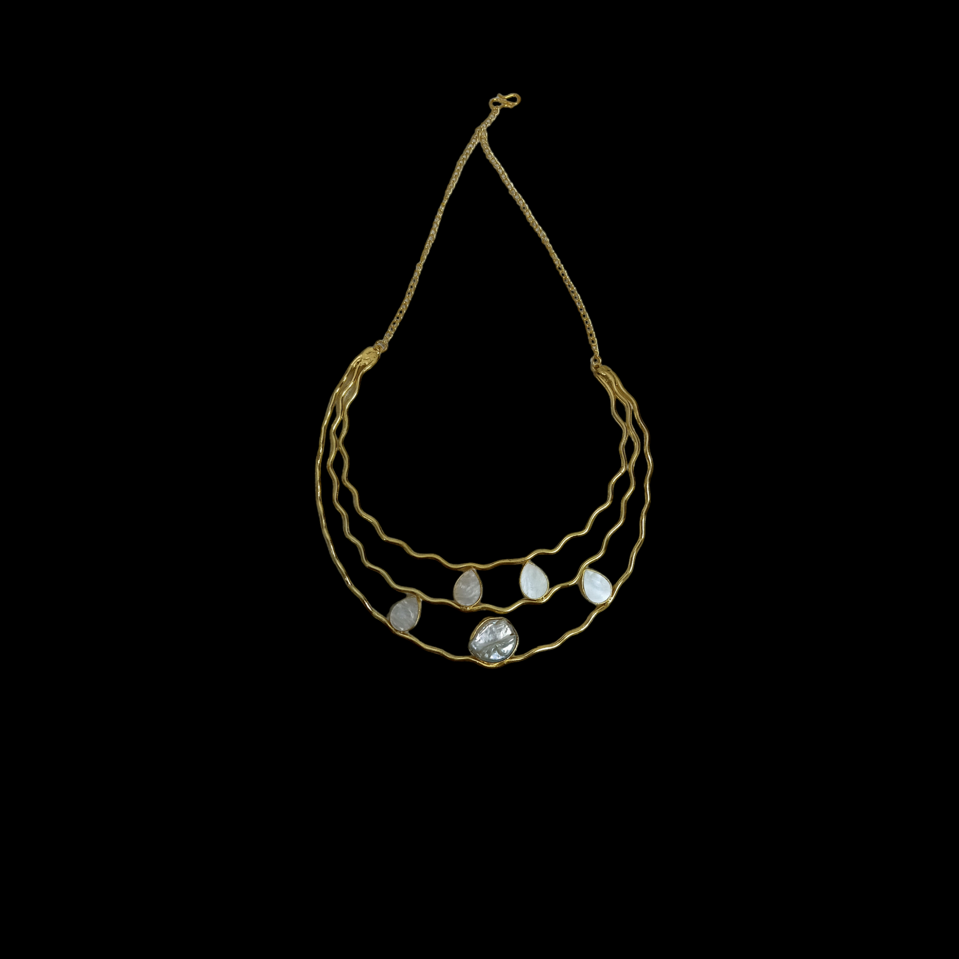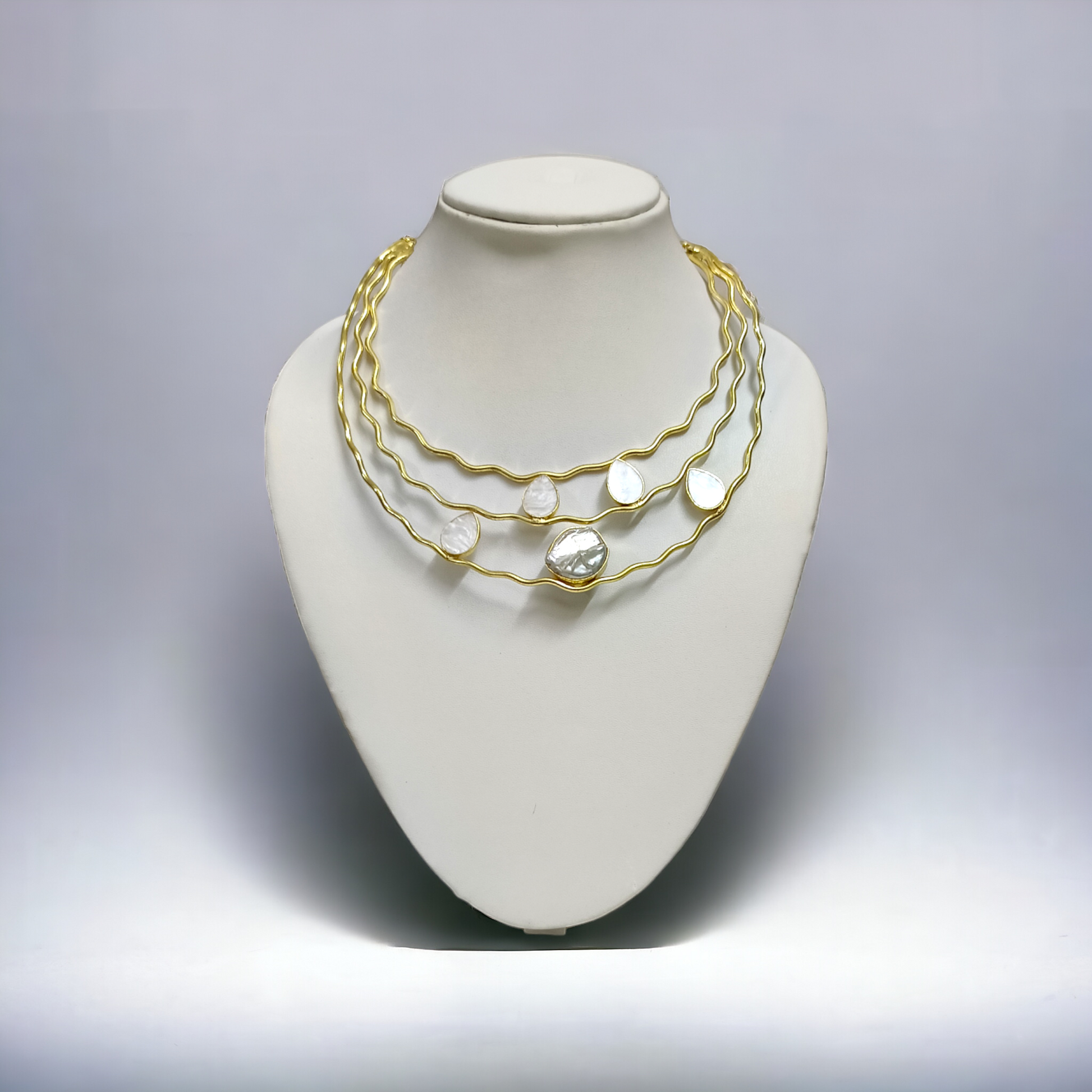 18k gold plated Handcrafted Three Layer Golden hasli add stones in hasli Mother of Pearl & Baroque Pearl