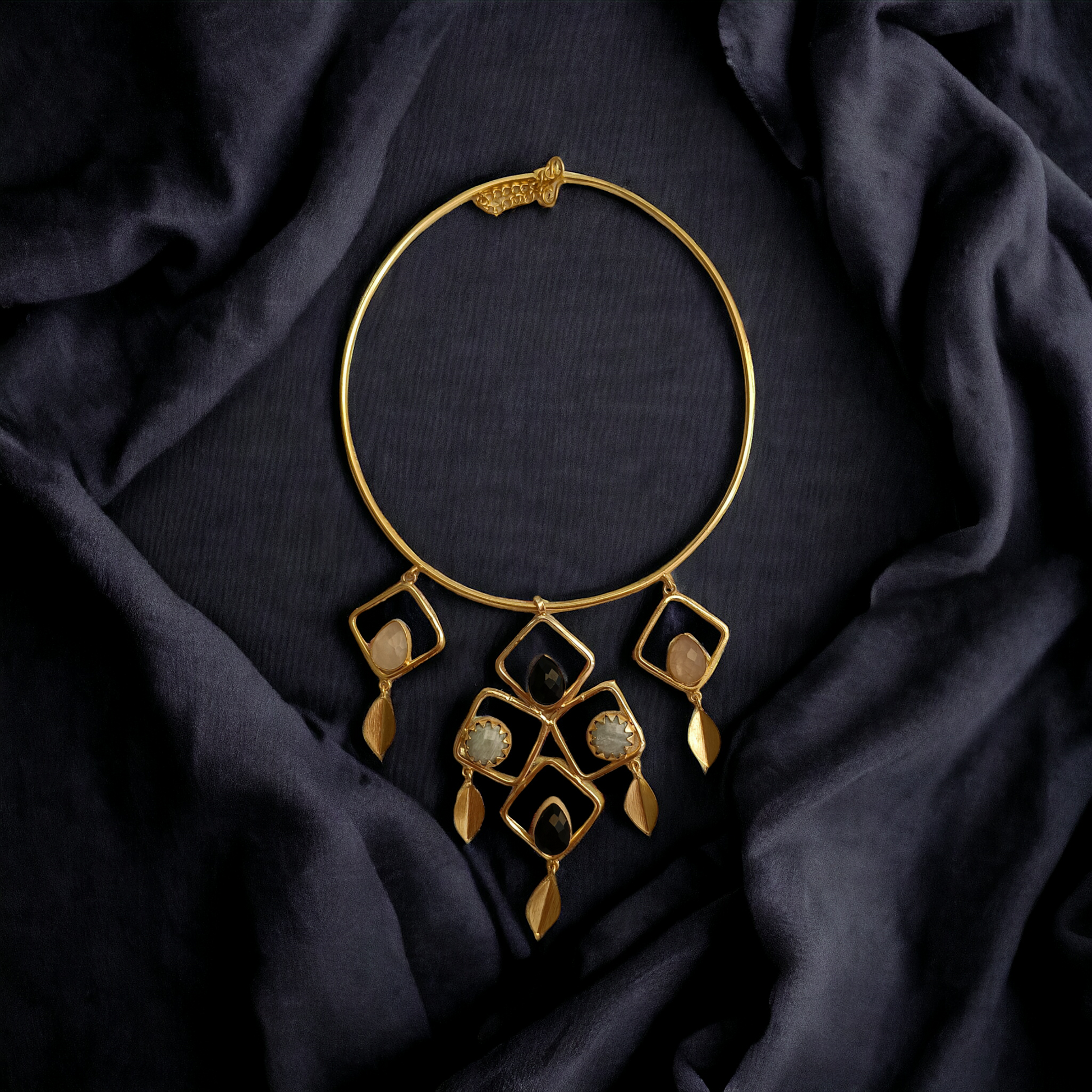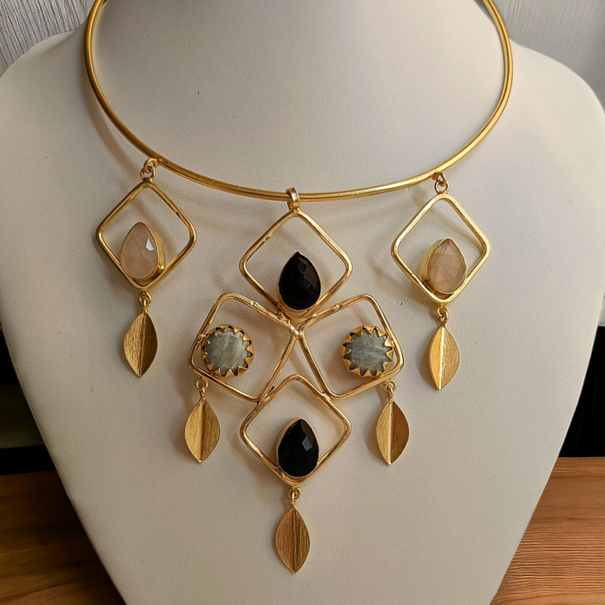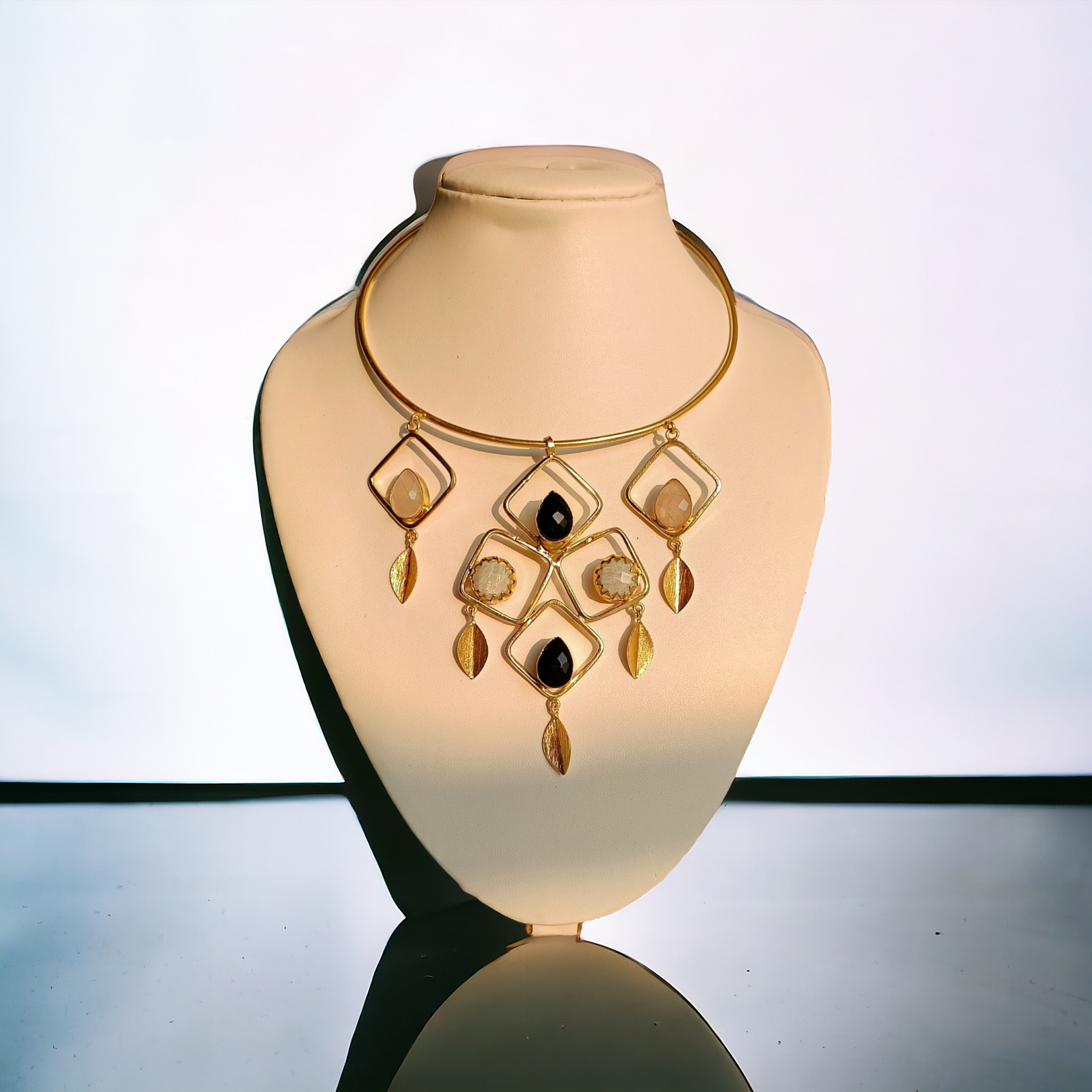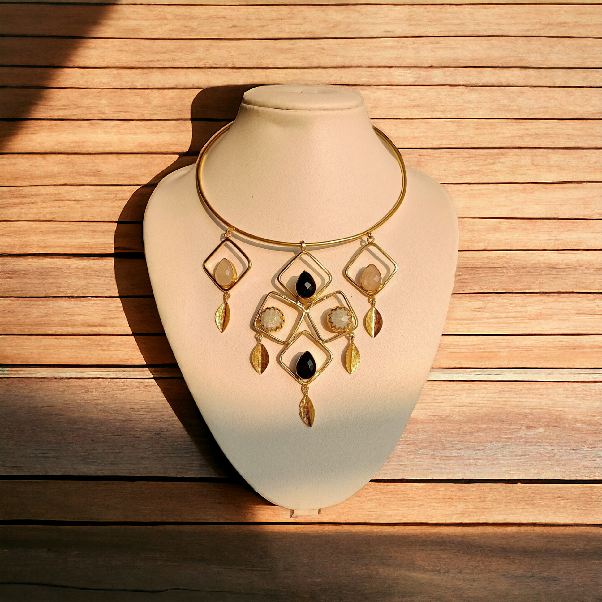 Natural Stone 18k gold plated Hasli this is Handcrafted Statement Jewellery style with your Western outfit.
