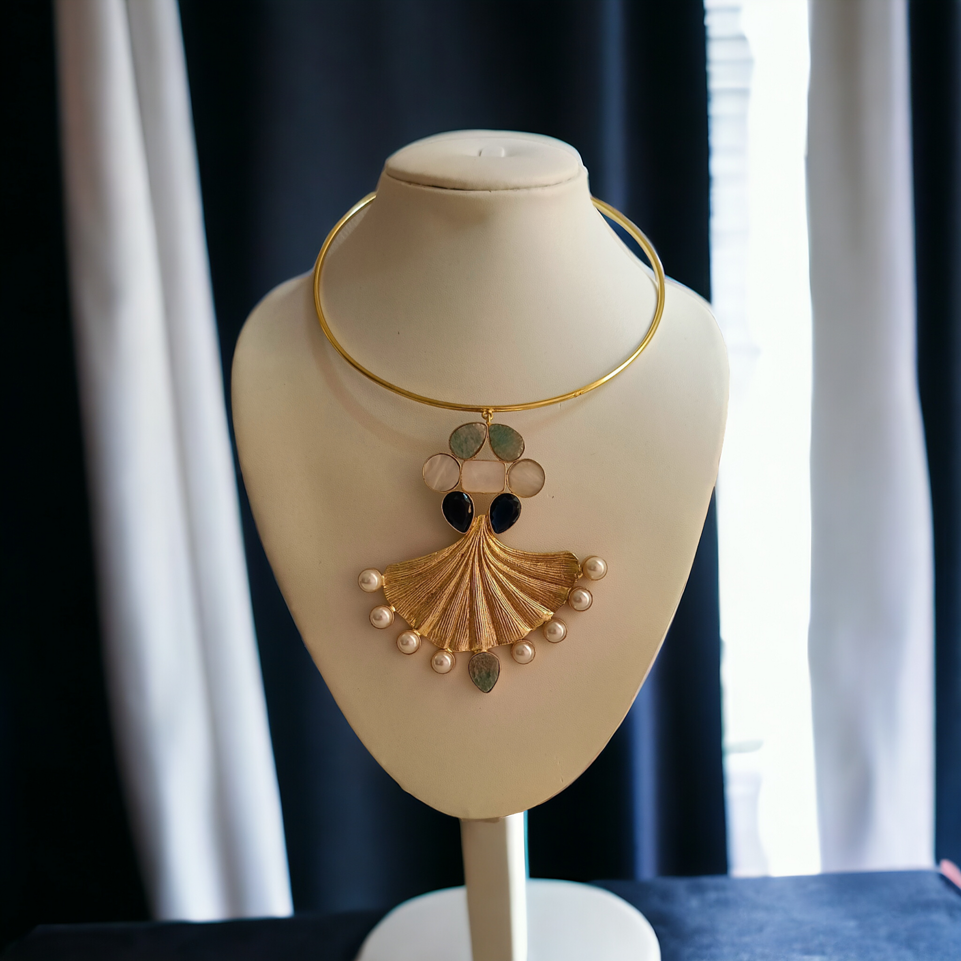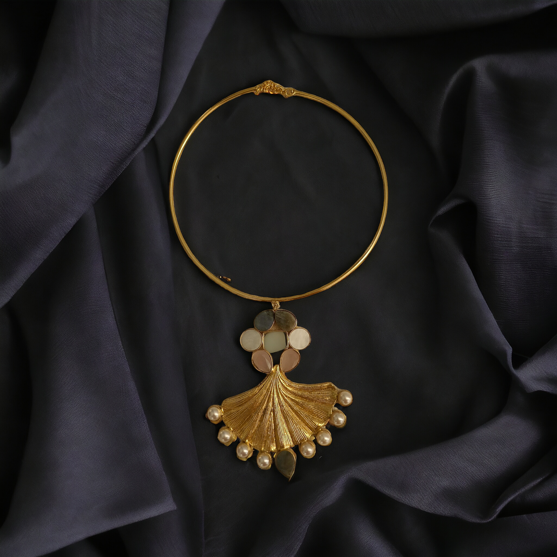 Mother of Pearl Hasli Handcrafted Designe By Brass Material and Natural Pearl and Natural Stones