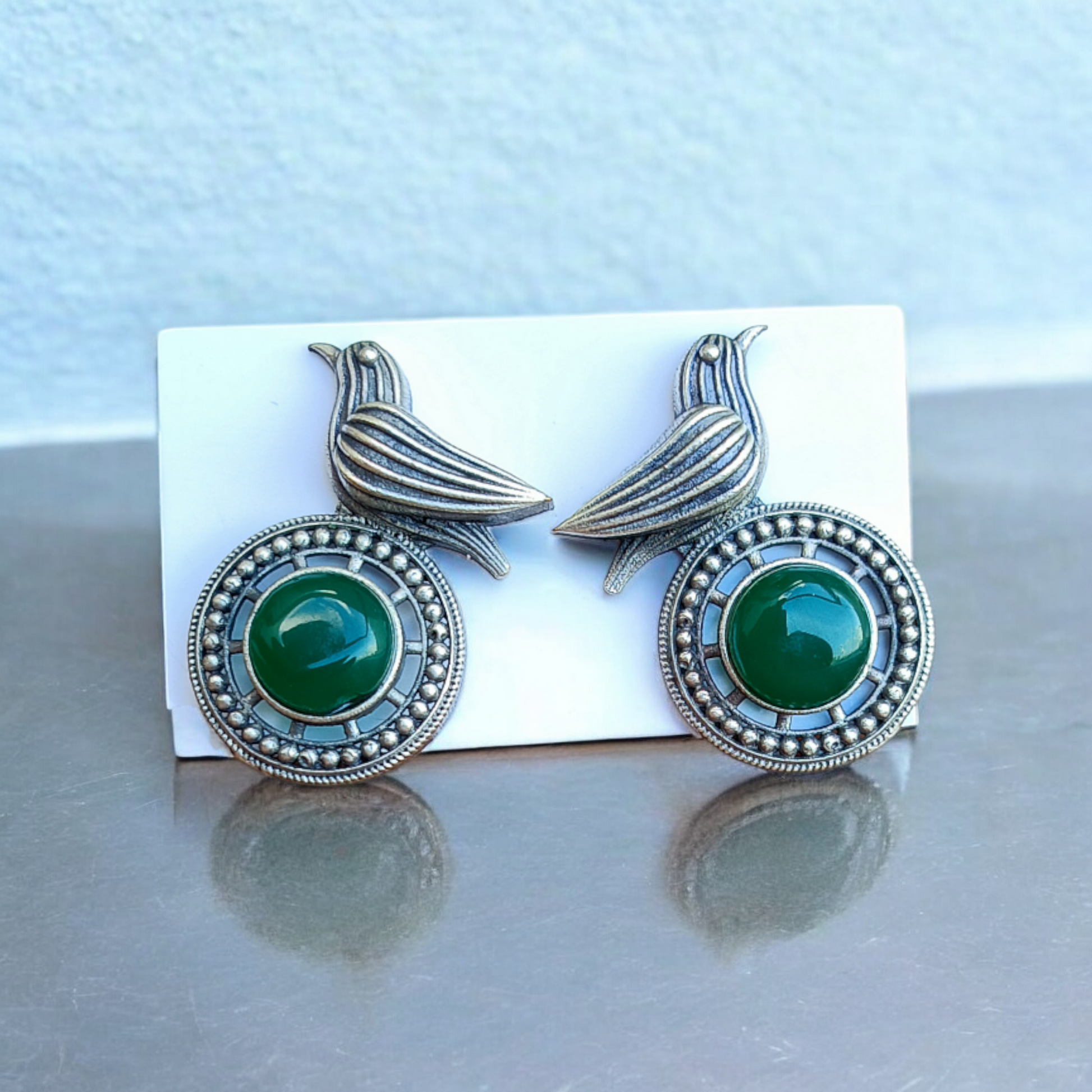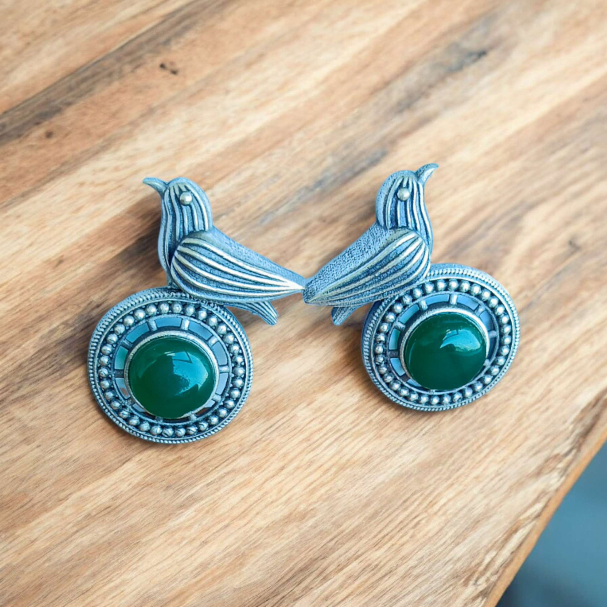 Oxidised Green Bird Earring